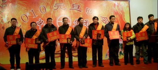本次年會共分為三部分。第一部分是2009年總結(jié)會,于上午成功召開;第二部分是2009年優(yōu)秀員工頒獎大會,于下午三點隆重舉行,來自集團及分公司的十二位優(yōu)秀員工受到表彰;第三部分是2010年元旦晚會,于下午四點開始,在一派喜氣洋洋中,應(yīng)邀嘉賓、集團及各分公司領(lǐng)導(dǎo)、集團及各分公司員工、員工家屬等共計200余人一起度過了美好而難忘的快樂時光。